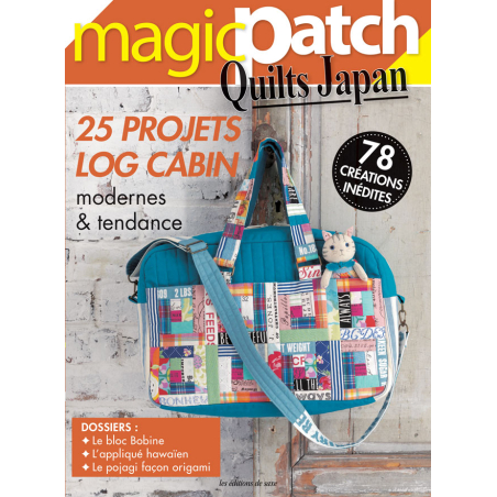 Vous cherchez un modèle de patchwork avec des blocs Log cabin ? Dans ce magazine de 96 pages, vous trouverez 25 projets modernes et tendance avec ce bloc piécé et ses variantes : grands panneaux, sac multipoches, petits accessoires (porte-monnaie, trousses), mini-sac avec des blocs Marches du palais…