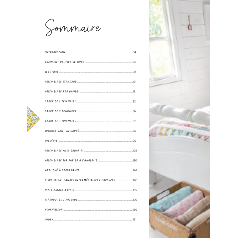 Au fil des 192 pages de ce livre, vous explorez une large palette de techniques de patchwork main et machine :