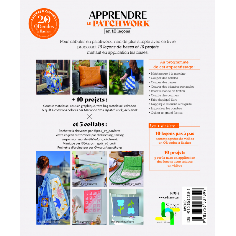Le + de ce livre de patchwork : 20 QR codes à flasher pour apprendre facilement les bases et réussir chaque projet.