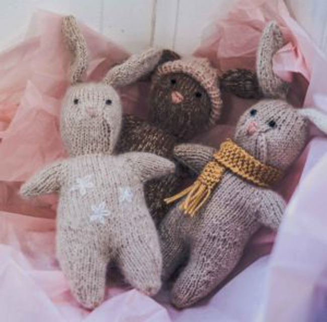 1. Réalisez un lapin au tricot et de petits lapereaux