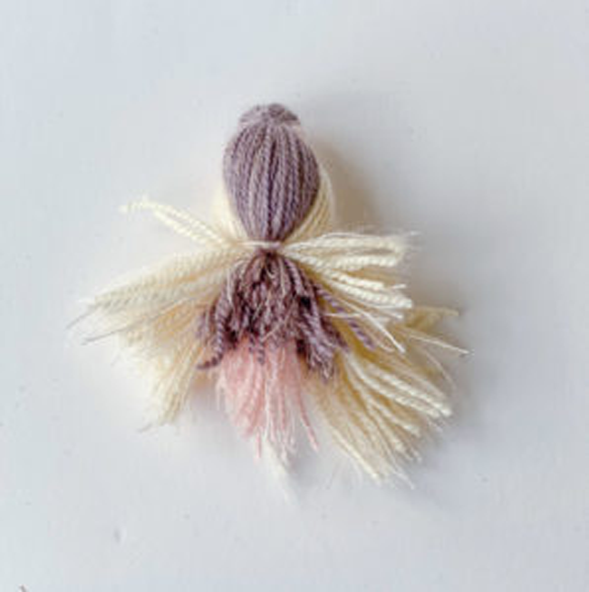 Repliez la pelote 1 vers le bas et nouez un brin autour des pelotes 1 et 2. Rabattez la pelote 3 de chaque côté vers le bas. Nouez un brin autour de toutes les pelotes.