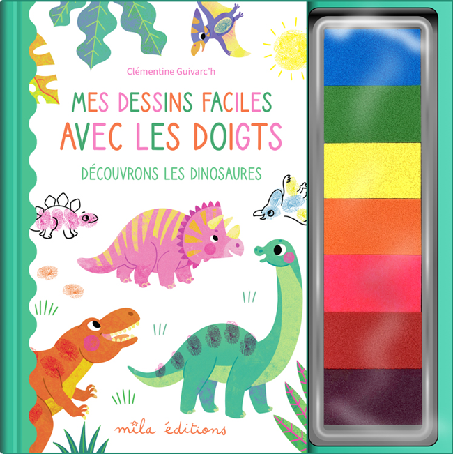 - Avec des instructions simples pour transformer ses empreintes de doigts en créations surprenantes (animaux originaux) ou compléter des scènes de dinosaures.