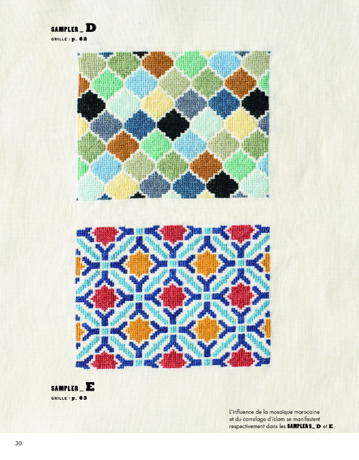 Avant de vous lancer, l’auteure vous explique, notamment avec des pas à pas photos, les bases du point de croix et de la broderie Bargello, mais également les points clés pour réaliser facilement les modèles proposés. Ensuite, il ne vous reste plus qu’à choisir vos motifs préférés et les grilles de points de croix ou de Bargello correspondantes pour broder de superbes samplers et accessoires !