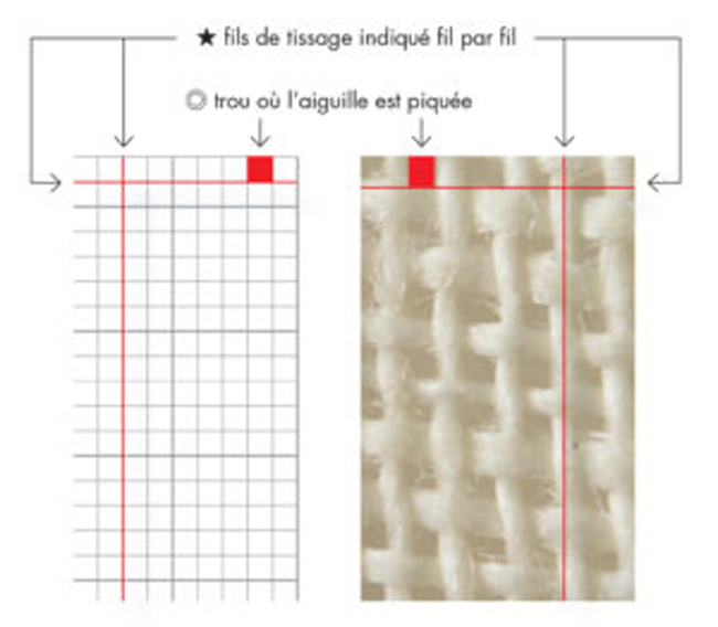 Bon à savoir : étant donné que vous travaillez sur un canevas (toile rigidifiée), nul besoin de tambour à broder comme ce peut être le cas pour un motif de point de croix brodé sur une toile unifil classique.