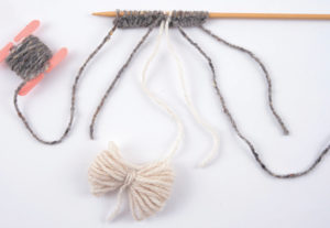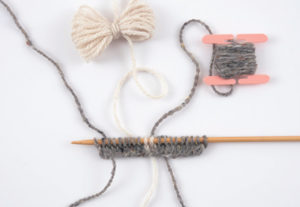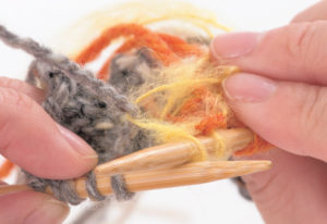 - Avec un autre peloton de fil gris, tricotez les 9 mailles suivantes.