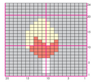 Bon à savoir : pour estimer la quantité de fil nécessaire, comptez le nombre de points sur le diagramme pour chaque zone. Enroulez souplement le fil autour de l’aiguille une fois par point, puis ajoutez 15 cm supplémentaires pour chaque peloton.