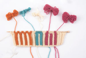 - Préparez autant de pelotons que de zones de couleur selon le diagramme. En effet, il faut un peloton pour chaque portion de couleur (même s’il y a 2 fois la même couleur sur le rang). Pour enrouler chaque fil de laine, vous pouvez utiliser plusieurs options : poissons, bobinettes, papillons…