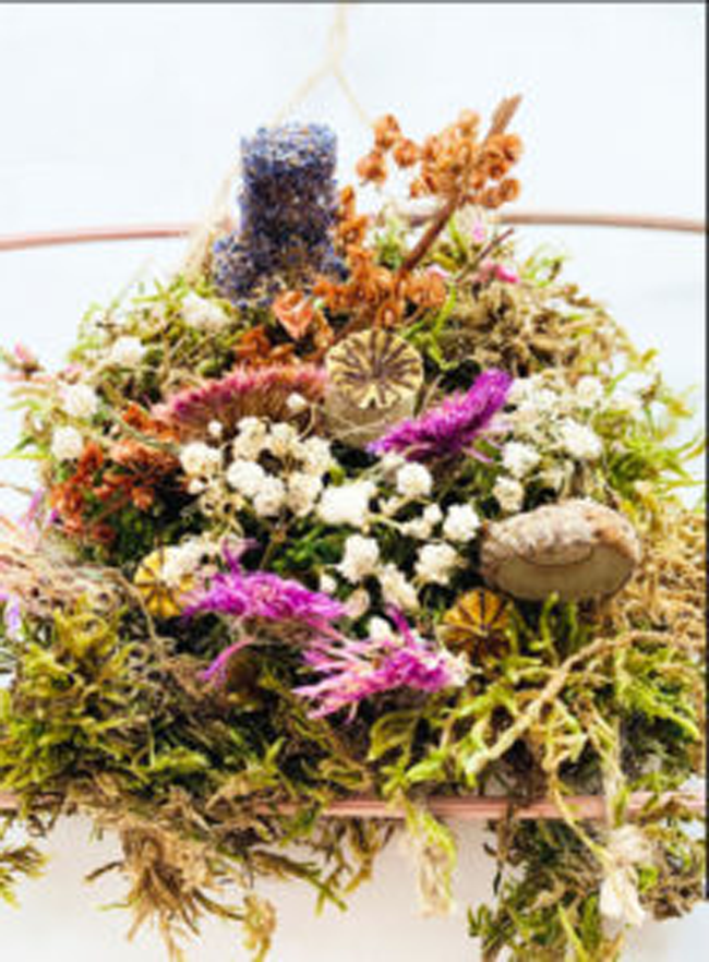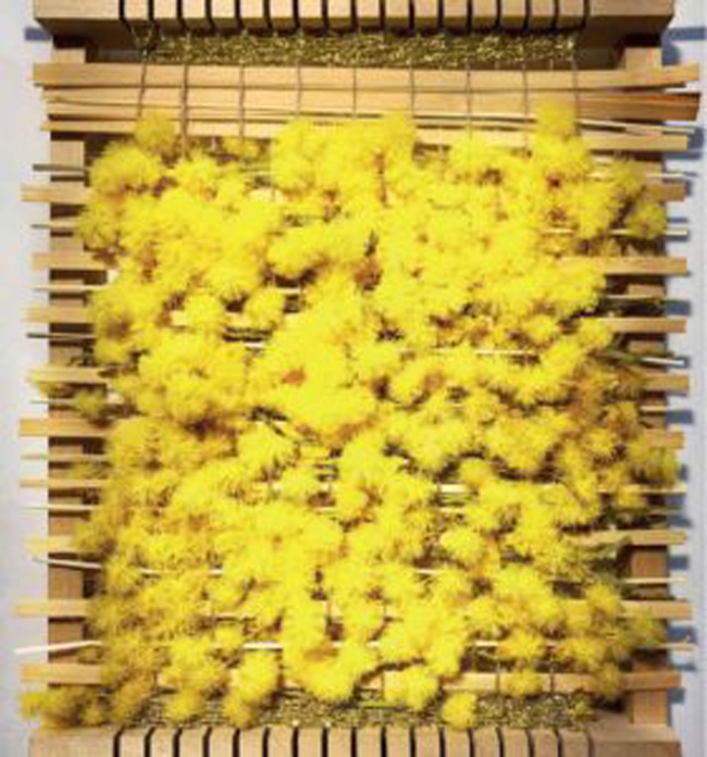 - Végétaux (fils de trame) : fleurs fraîches ou séchées, feuilles, mousse…
