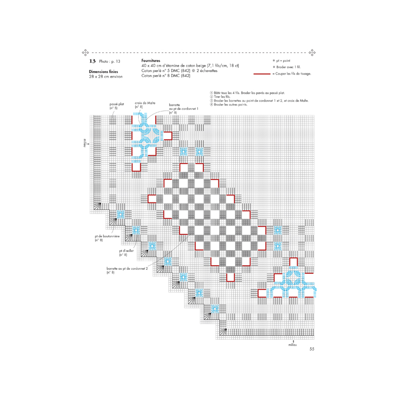 Avec des pas à pas photos, il vous invite à découvrir les bases de cette technique d’art du fil fascinante, composée de points comptés et de broderie à fils tirés. Mais il vous offre également la possibilité de créer 24 projets au rendu aussi délicat que des dentelles.