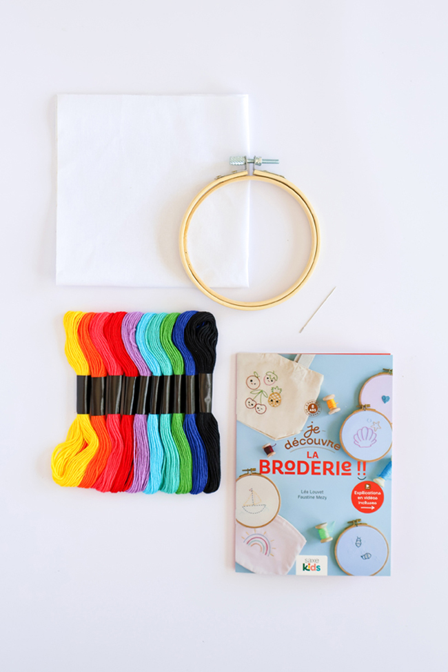 À l’intérieur, il trouvera tout ce dont il a besoin pour apprendre la broderie et broder 8 motifs stylés sur les supports textiles de son choix. À savoir le matériel de broderie pour débutant, mais pas seulement ! Il découvrira également des tutoriels très simples en vidéos et pas à pas photos pour maîtriser les bases. Il lui suffit ensuite de suivre les tutos photos fournis pour réussir ses premiers projets brodés : décos, customisation d’accessoires, cadeaux faits main... Offrez-lui sans attendre ce coffret destiné aux enfants pour une initiation à la broderie facile, ludique et inspirante !