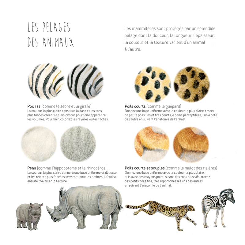 Toutes leurs astuces pour reproduire les attitudes caractéristiques, les pelages, les plumes et les nuances de couleurs sont rassemblées dans ce livre.