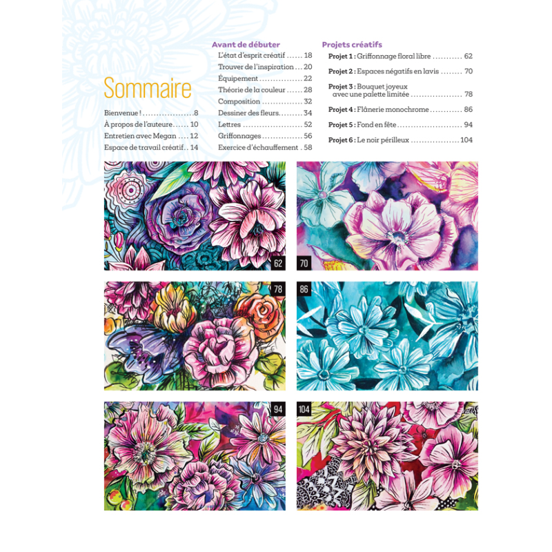 En effet, vous découvrirez toutes les possibilités créatives de l’acrylique, l’aquarelle, les marqueurs, les pochoirs, les collages et bien plus encore. Avec 12 projets à la portée de tous et captivants, vous apprenez à combiner les techniques de mixed-media et à créer en toute liberté des tableaux floraux vibrants d’originalité.