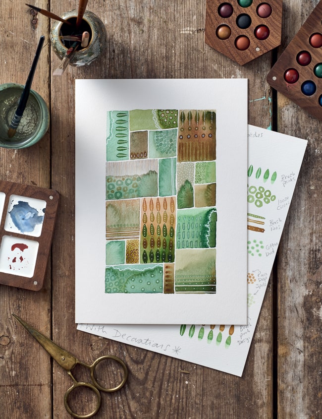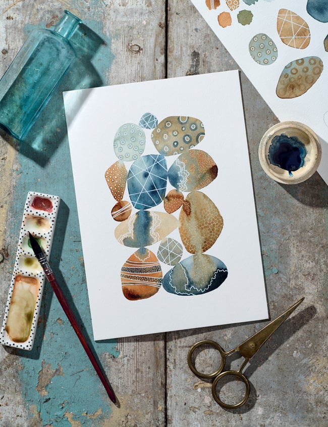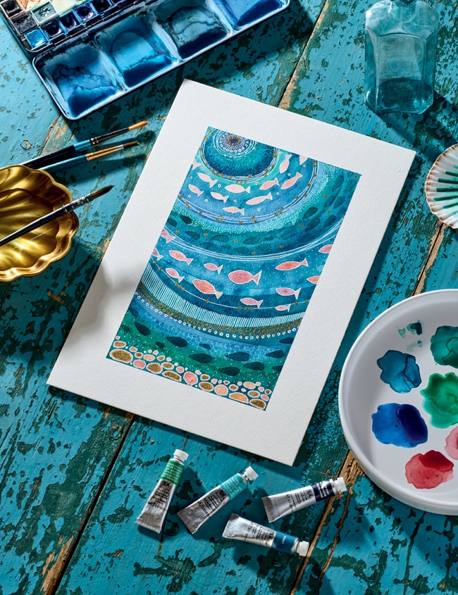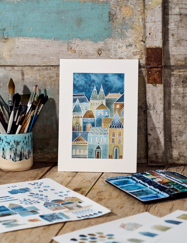 Être dans mon atelier… Je peux y ressentir une multitude d’émotions différentes, selon le jour, mon humeur ou simplement la tâche à accomplir ! Mon atelier est toujours un endroit où je me sens en sécurité et en paix. J’aime les matins lumineux où je peins, mais aussi les après-midi pluvieux où je peux admirer par la fenêtre les jardins verdoyants en contrebas. Je ne suis jamais plus heureuse que d'être assise dans mon atelier, à écouter de la musique et à tremper distraitement mon pinceau dans ma tasse de thé !