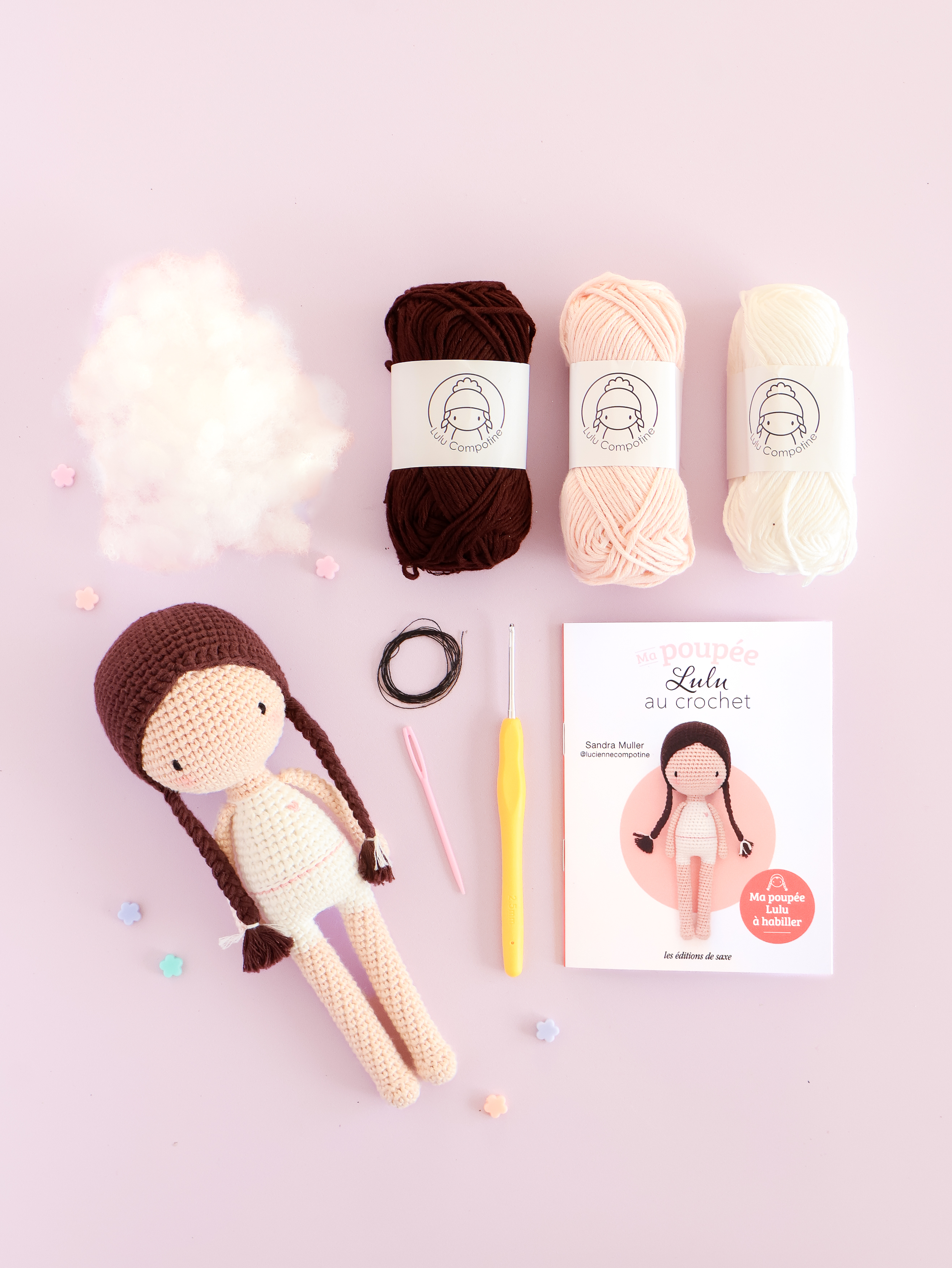 Réalisez facilement la poupée au crochet de Lulu Compotine grâce à ce coffret